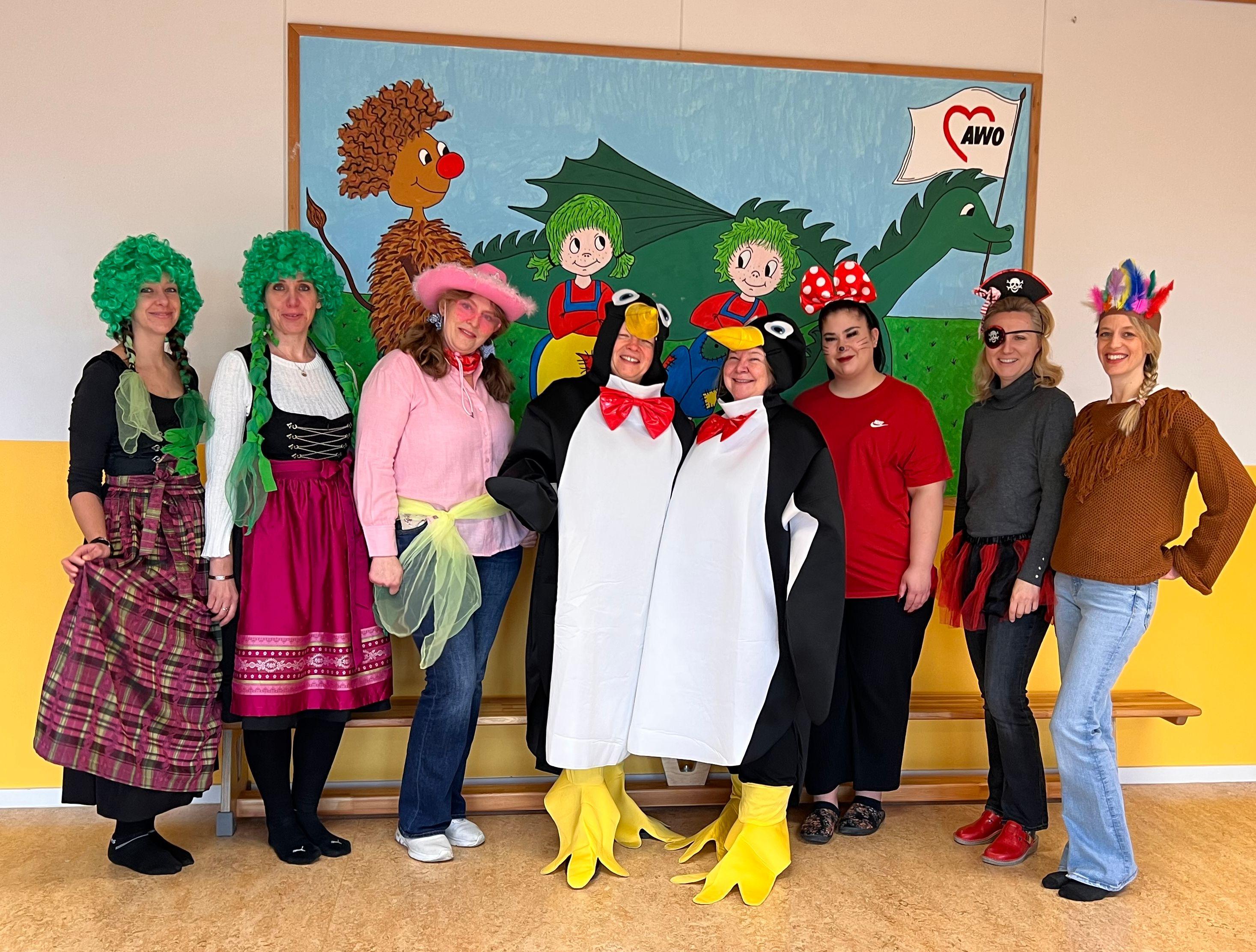 Und hier unsere Mitarbeiter*innen: das Wischelteam, das Wuschelteam, das Korkseteam und die Leiterin/ Ständig Stellvertretende Leiterin als Pinguine!